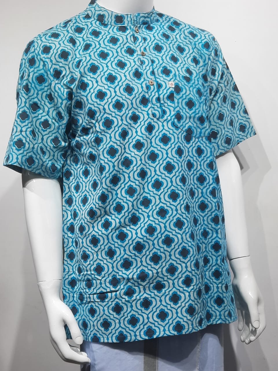 This traditional block-printed blue kurta with a mandarin collar gives you a smart and ethnic look at the same time. The unique print makes it stand out from the crowd, while the soft cotton fabric keeps you cool and breezy throughout the day. It can be paired with jeans or a pyjama for a crisp and stylish appearance.
